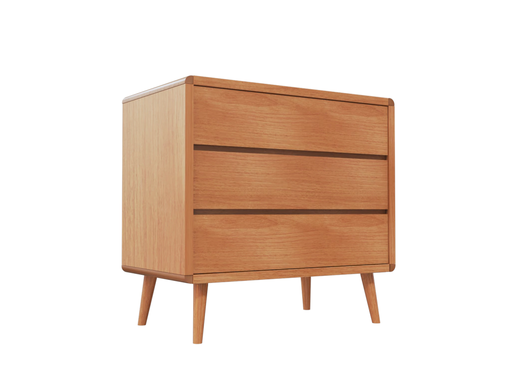 Produto produzido MDF Cru, exceto a divisória e prateleira que são produzidos em MDF BP e os fundos de gavetas e da comoda são produzidos em HDF;