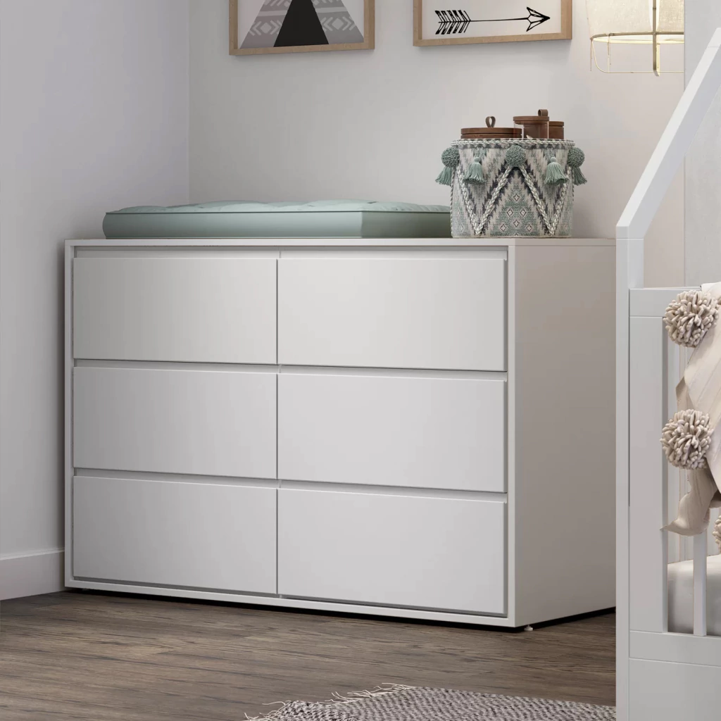 A comoda Wood é um produto moderno e de alta qualidade. Possui 6 gavetas profundas onde pode ser armazenado roupinhas dobradas. Além disso essa comoda foi planejada com maior profundidade que permite ser utilizada como trocador.